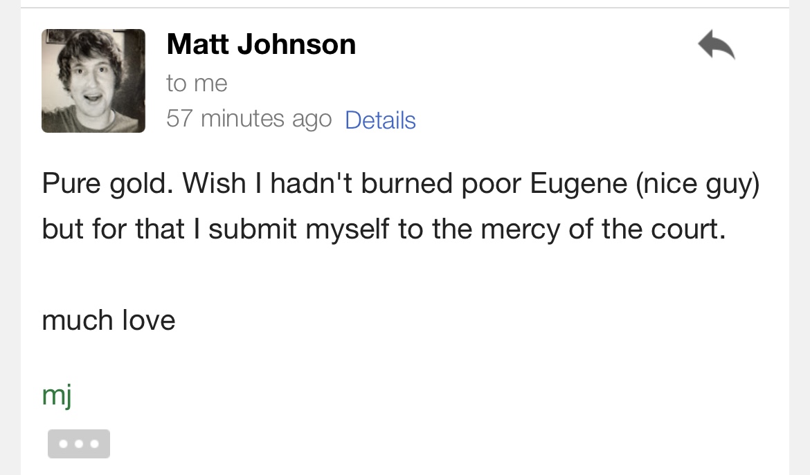 It's also my favorite project of yours. I go back to it so often. It just never gets old for me too. Something else I wanted to ask about, because this is also relevant to Matt and Mara– you always play characters named after yourself. How do you remain separated from that when you’re acting and why are you always playing a “Matt Johnson”?